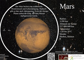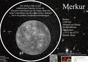 Auf jeder Tafel (außer der Sonne) befindet sich ein großer, weißer Kreis, der die Größe der Sonne Sonne zeigt. Auf der linken Seite sind dann zwei kleine Kreise, die die Größe des jeweiligen Planeten und der Erde zeigen.