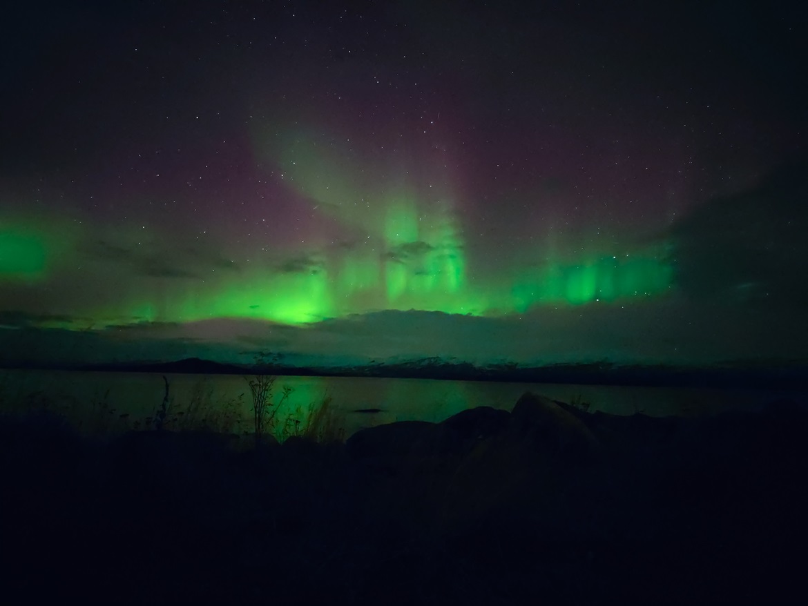Im Jahr 2023 unternahm ich zwei Reisen nach Abisko, hoch oben im Norden von Schweden, zwischen Narvik und Kiruna. Dieser Ort gilt als einer der besten Orte weltweit, um Polarlichter zu beobachten. Daher unternahm ich einmal als Kursfahrt mit dem Astronomiekurs und einmal als Vorbereitung für diese Fahrt die abenteuerliche zweitägige Zugreise. Beide Aufenhalte waren aber erfolgreich, so das einige Bilder des Nordlichtes zustande kamen.
